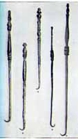 Hooks, long thin metal instruments were used as probes and the maneuvering small pieces of tissue more easily.